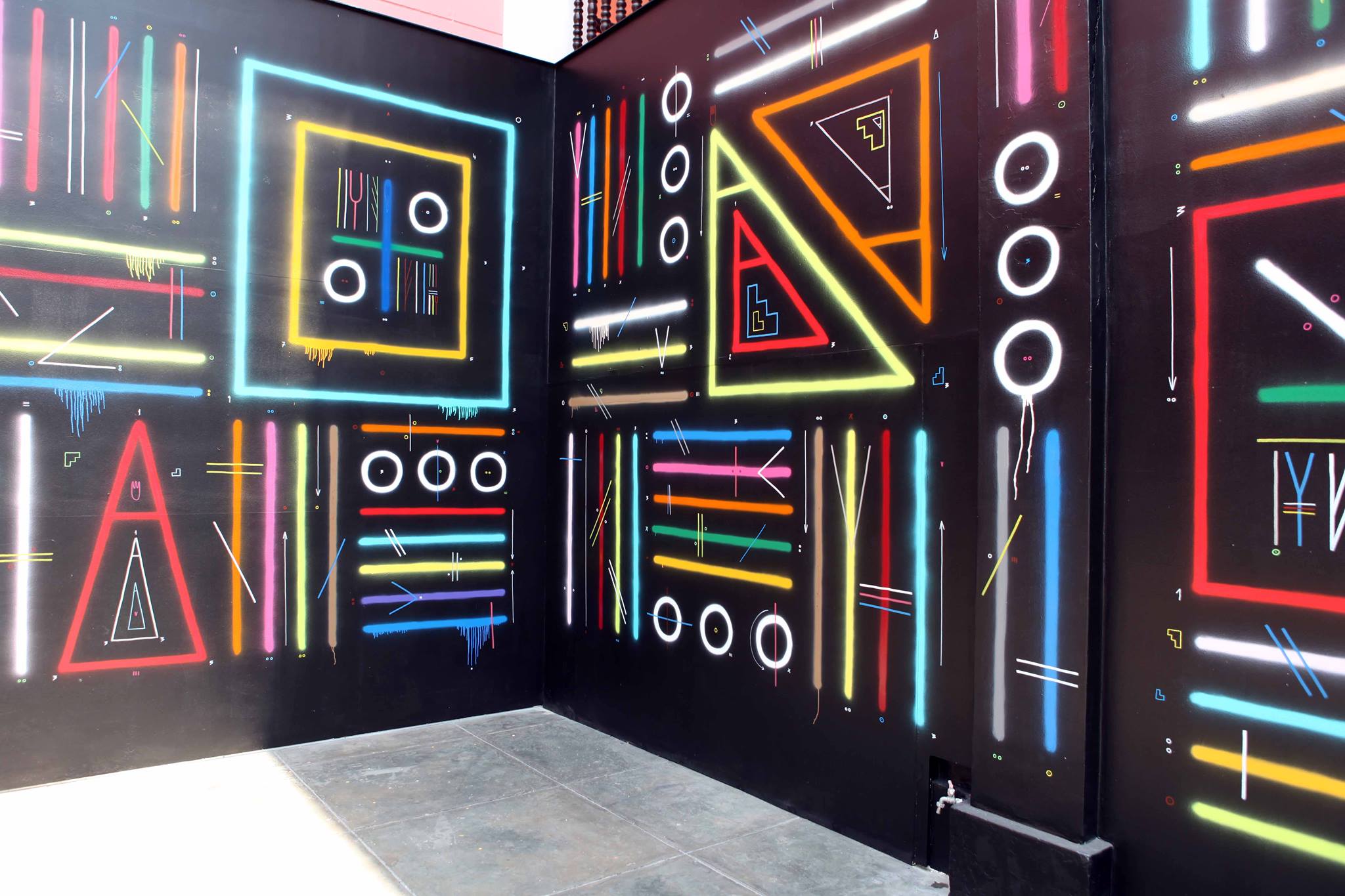 Como parte de la exposición Antes, después, ahora, el artista Sixe Paredes vuelve a sus orígenes grafiteros para intervenir la fachada lateral y la galería exterior de nuestro CCE pintando los murales Abstracción numérica y Quipu abstracción.