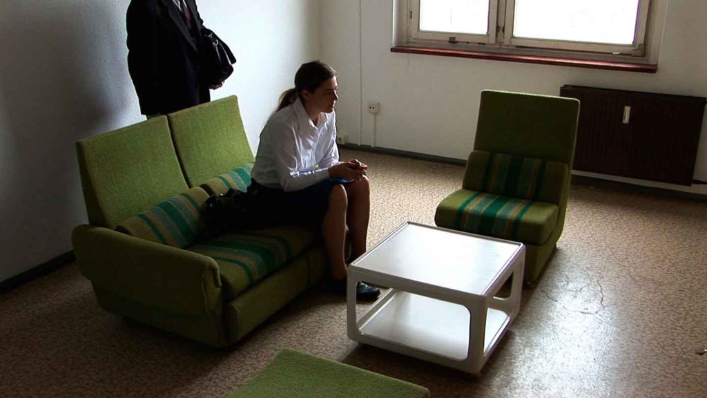 Esta pieza permite una conversación sobre las metodologías de control de un poder totalitario y, precisamente, la imposición de la inmovilidad en lo local. Reproduce en una performance teatralizada un interrogatorio de la Stasi –policía política de la Alemania comunista– basada en las transcripciones documentadas de época.