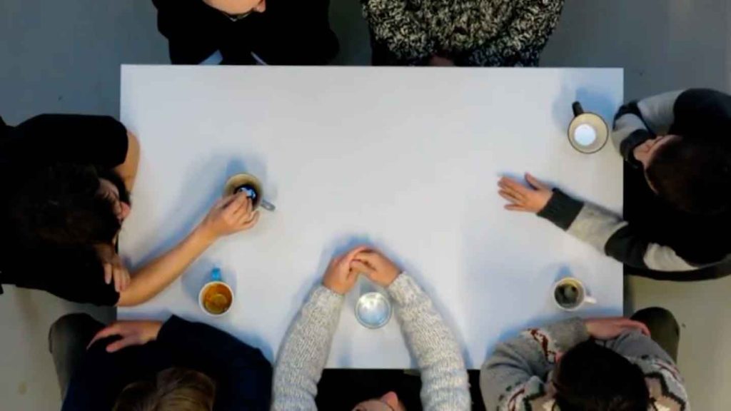 Siete artistas son invitados a tener una conversación acerca de la idea de comunicación, cada uno en su lengua materna. Los idiomas reunidos en la mesa son ruso, hebreo, holandés, portugués, lituano, español y estonio.