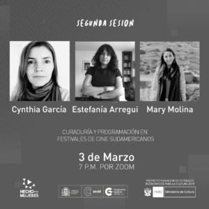 El III Festival Internacional de Cine Hecho por Mujeres, dentro de su programa de actividades paralelas a las proyecciones, llevó a cabo los seminarios en línea Curaduría y programación en festivales y muestras feministas (2 y 3 de marzo) y Perspectiva de género en las industrias culturales (8 y 9 de marzo de 2021).