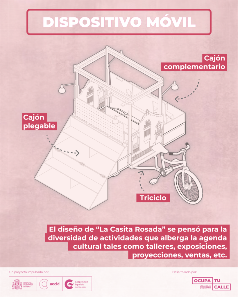 De la mano de la plataforma de intervenciones urbanas Ocupa Tu Calle, el CCE Lima junto con sus vecinos y vecinas, gestores culturales y líderes comunitarios entró en la segunda fase del proyecto Reconociendo la casita rosada, un grupo de encuentros enfocado ahora en diseñar y practicar una agenda de acciones concretas sobre el presente y futuro de nuestro Centro, en su vínculo con su entorno ciudadano más inmediato. Temas importantes como la acogida y accesibilidad, la participación vecinal en su programación, los cuidados que podemos brindar y la red de apoyos que podemos tejer entre todos y todas en Santa Beatriz guiaron las reflexiones, el ejercicio de imaginación y trabajo colectivos.