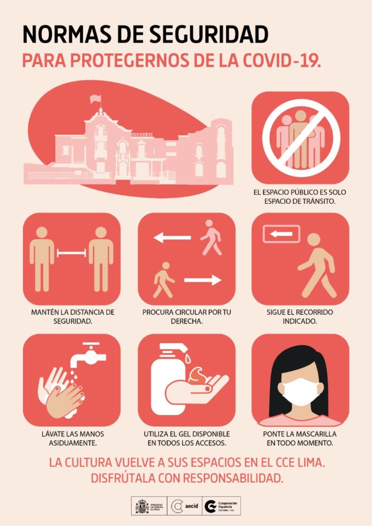Para eso hemos acondicionado algunos de nuestros espacios. Estamos felices de que la cultura empiece a volver a estos y con ella, tú, nuestro público destinatario. Ayúdanos actuando con responsabilidad dentro del edificio y respetando la convivencia. Es responsabilidad de todas/os.