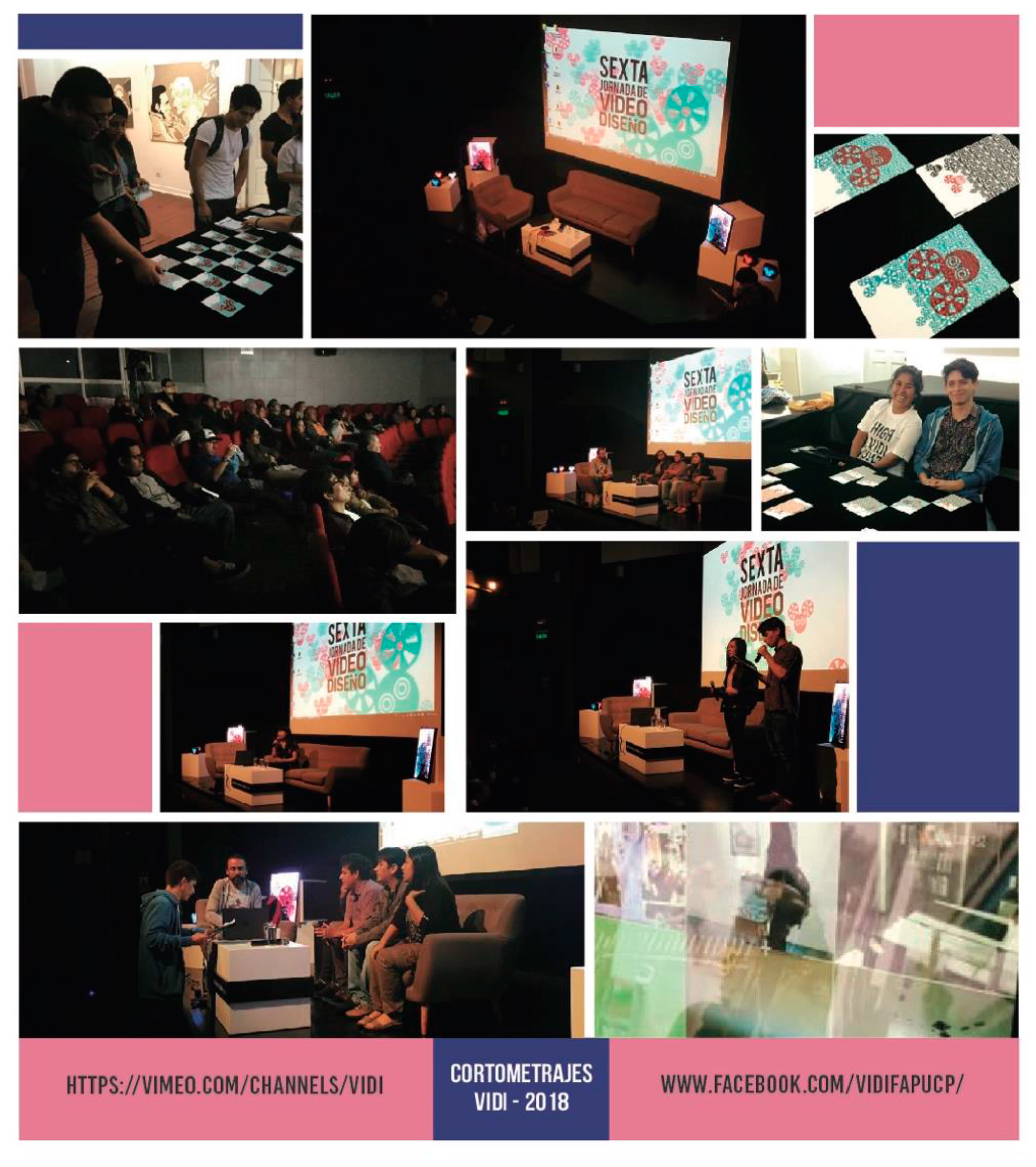 Desde hace siete años, profesores y estudiantes de la especialidad de Diseño Gráfico de la Universidad Católica (PUCP) organizan la Jornada de Video y Diseño-VIDI en la que se exhiben las más sobresalientes producciones audiovisuales en 2018 (que involucran diseño y nuevas tecnologías), realizadas por en las escuelas de Arte y Diseño de Lima.