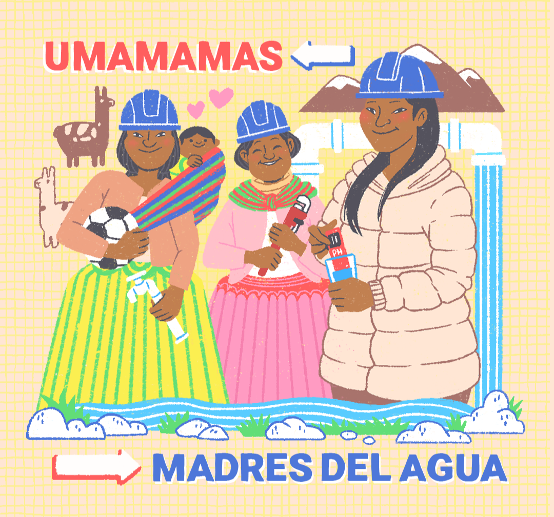 En Bolivia, hay un grupo de madres y guardianas del agua: las Umamamas. No solo se encargan de conseguir el recurso hídrico para sus familias, además se han capacitado como fontaneras para asegurar su distribución y generar redes de apoyo.