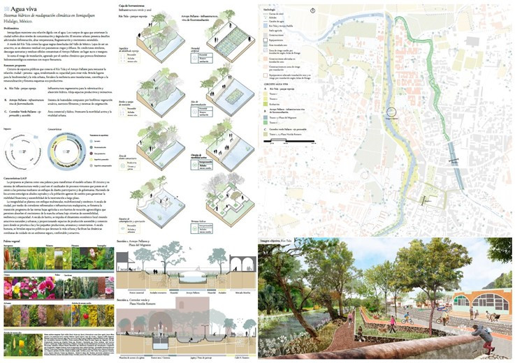 El proyecto propone un circuito de espacios públicos que conecta el Río Tula y el Arroyo Pallares para restaurar la relación: ciudad – persona – agua, revalorizando su capacidad para crear vida. Brinda lugares para la biodiversidad y la vida urbana, fortalece la resiliencia ante inundaciones, contribuye a la renaturalización y fomenta esquemas eco-productivos.