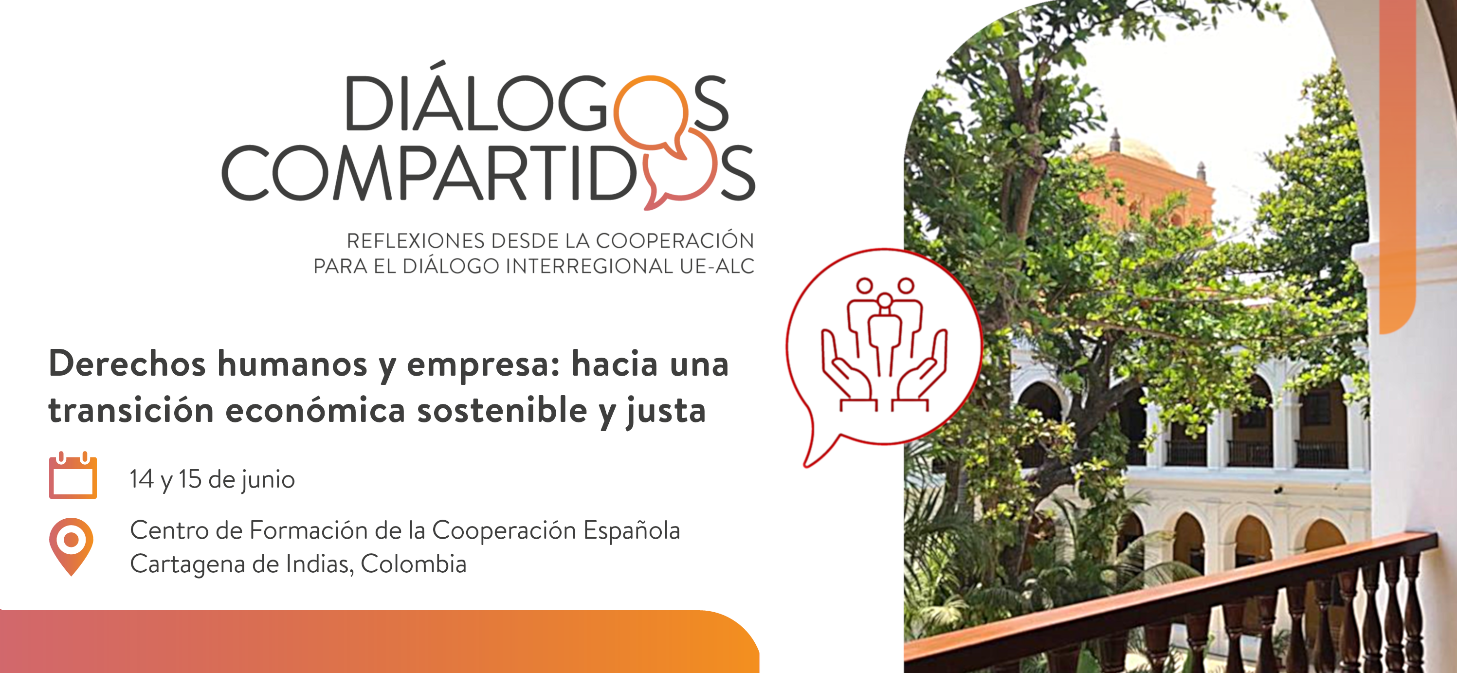 Así, en el marco de la iniciativa Diálogos compartidos. Reflexiones desde la cooperación para el diálogo interregional UE-ALC, se está promoviendo el encuentro sobre Derechos humanos y empresa: hacia una transición económica sostenible y justa, que se celebrará los días 14 y 15 de junio de 2023 en el Centro de Formación de la Cooperación Española en Cartagena de Indias, Colombia. Servirá como estímulo y espacio para identificar retos y vías de acción conjunta con diferentes actores e instituciones, con el objetivo general promover un debate en el que ALC puede realizar aportaciones a los retos compartidos y reflejados en las agendas comunes entre la región y la UE y que contribuya a la construcción y consolidación de políticas públicas sobre derechos humanos y empresa en la región.